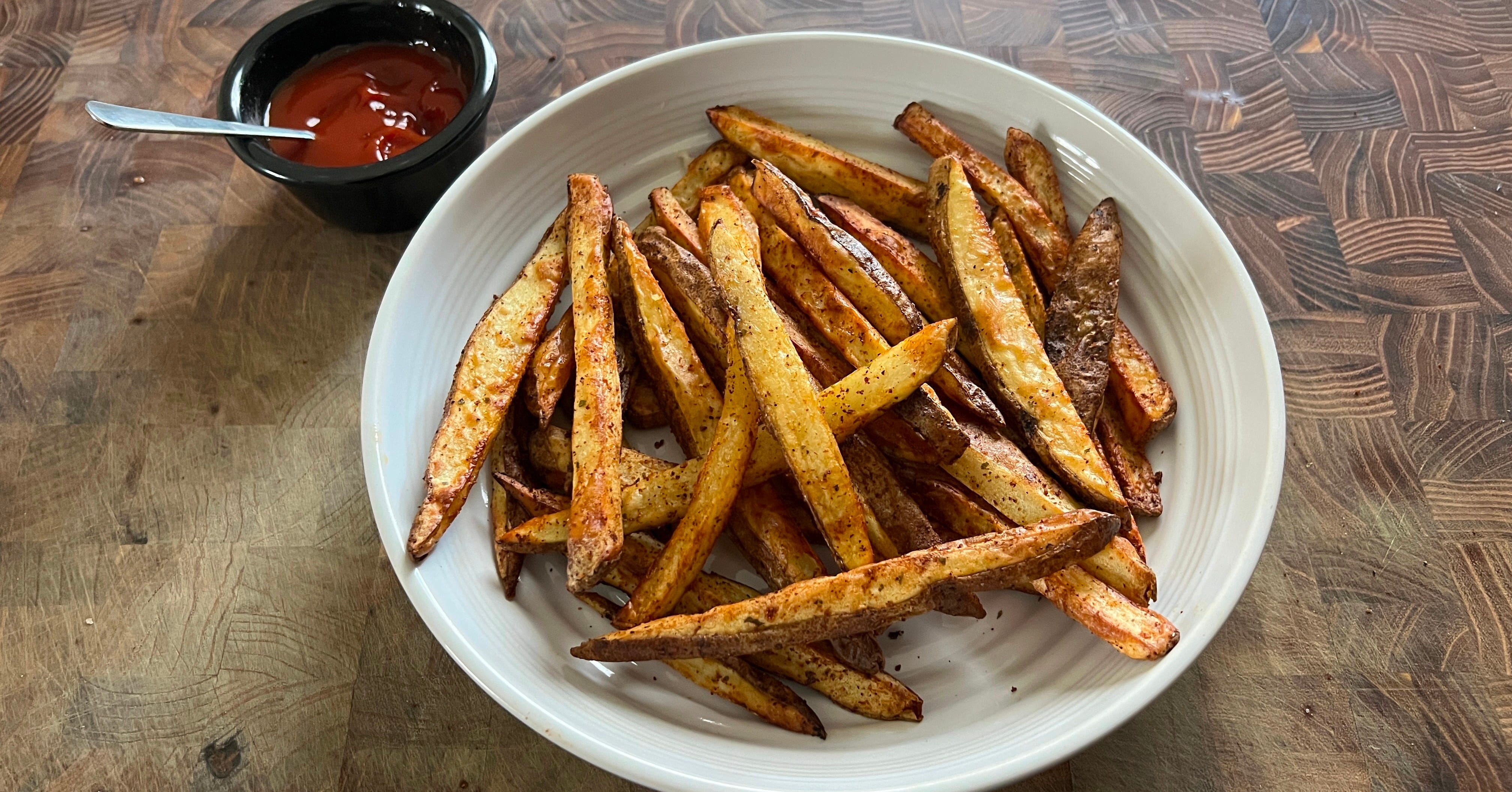 Return the seasoned fries to the air fryer for another 10 minutes at 385°F, or until golden and crisp. (Note: some air fryers may take 5-10 minutes longer.)